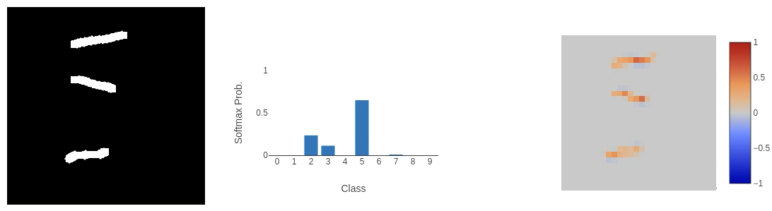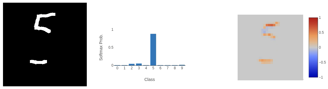 This classifier returns three pieces of data. The original input image, the softmax probabilities of the classifier, and the explanation